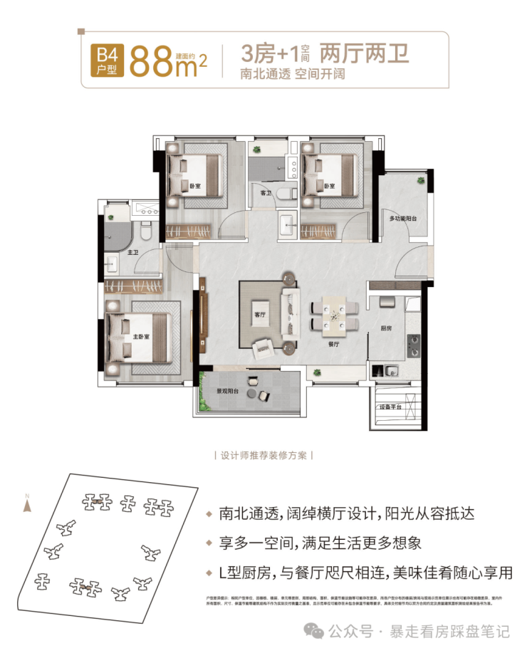 【88㎡:3房+1(空间)2厅2卫】(竖厅)