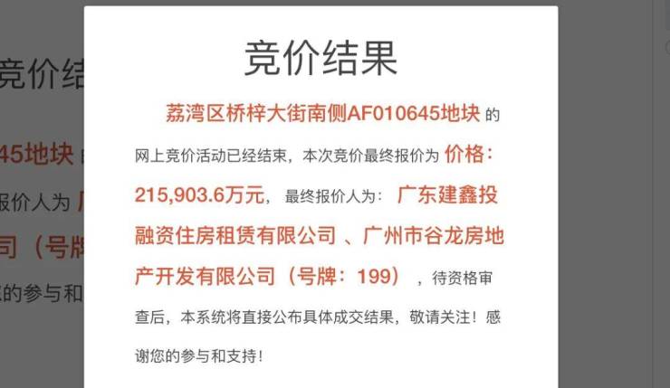 2023年4月,广东建工联合体以21.6亿底价竞得桥梓大街南侧地块,折合楼面价2.2万/平。