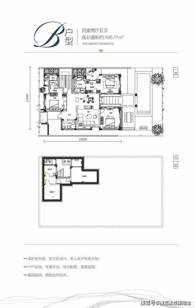 B户型:四室两厅五卫 / 规划面积约195 ㎡
