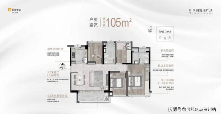 四开间正南向朝阳 · 5.6米LDKG宽厅布局 · 超级主卧套房