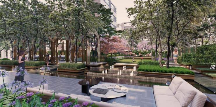 值得注意的是,项目通过“垂直绿化”设计,在每层公共区域设置绿植墙,结合底层约3000㎡的中央园林,形成立体生态体系。建筑还获得LEED-ND金级预认证,体现绿色开发理念。