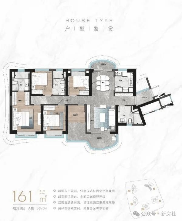八重酒店式归家礼序,选用博物馆级环球石材,打造酒店式社区落客区;社区迎宾大堂(层高约9米);四季风雨连廊;单元豪华大堂;超配车库入口;车库地下豪华大堂;精装车马厅;臻享高定生活入户礼遇,塔尖圈层生活境界。