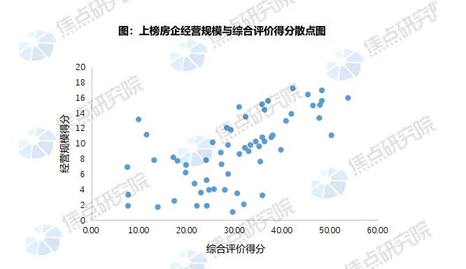 经营规模反应房企抵御风险的能力。经营规模与综合评价得分相关性较强,企业经营规模取决于房企资产规模、资产质量以及销售额等指标,更大规模、更优质的资产,以及更好的销售业绩意味着房企能够全方位、多角度的抵御市场风险,因此也为企业带来了更高的安全评分。可以看到榜单前10位房企年度销售额均超过1500亿元,也均为全国性房企,土地储备遍及全国重点区域,能有效化解市场及政策轮动带来的不确定性。