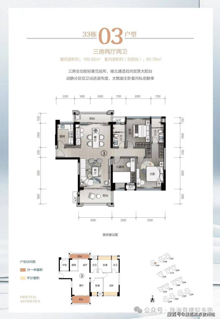逸骏半岛三期33栋新品,建面约90-122㎡,以巧思匠造,实现空间阔绰灵动变化、户户南向采光充沛的大三房、大四房。