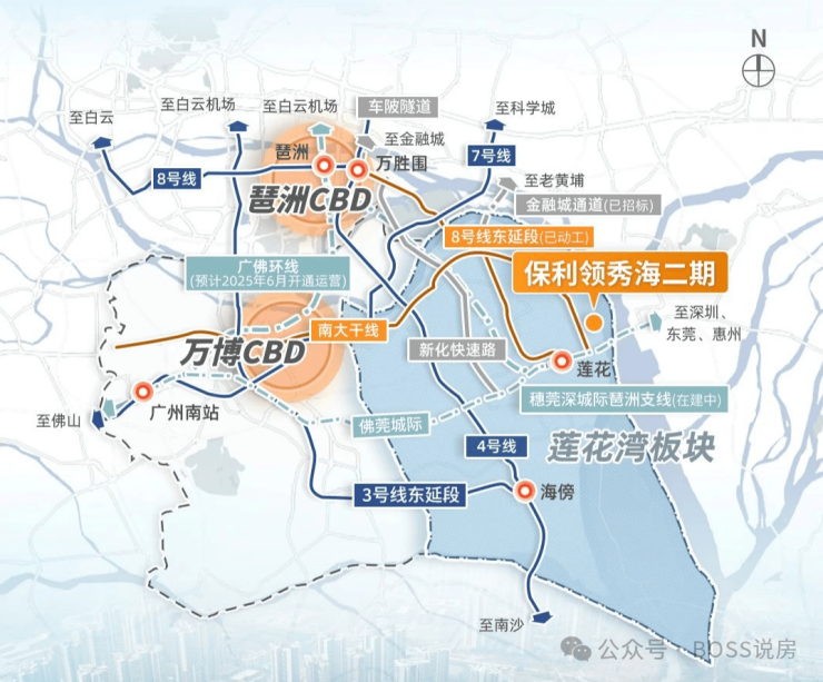 附近有现成的莲花站,聚集8号线东延线(已动工)、佛莞城际(已通车)、穗莞深琶洲直线(在建)、17号线(规划中)。