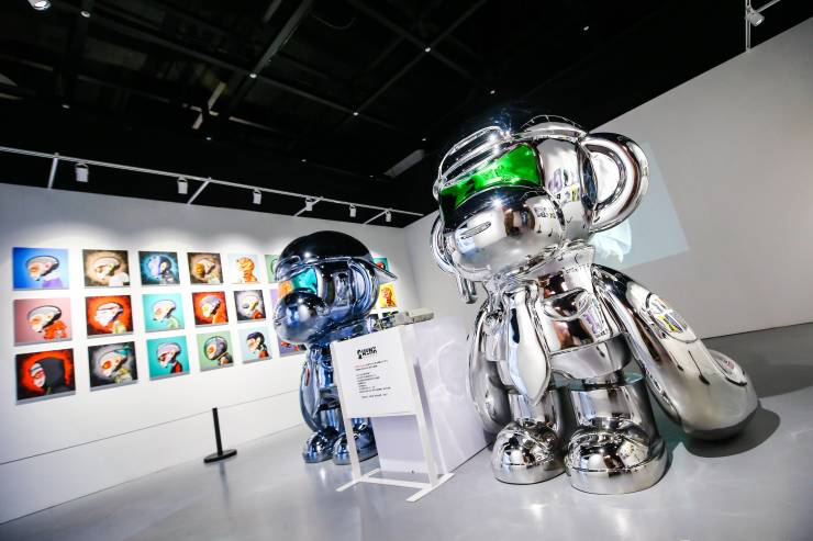 展厅里的数字文创商店内,集齐了唯一艺术平台数字艺术品的周边文创产品,如盲盒、玩偶公仔、帆布袋、T恤等,琳琅满目的产品吸引了众多观众驻足。展览的主办方、唯一艺术CEO佟世天表示,从产业角度来看,数字艺术容易与工业设计深度融合,这为数字艺术拓展了新的应用场景。