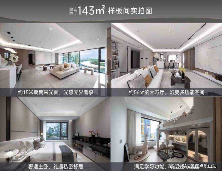 4. 优质户型设计:全南向日照设计,143㎡户型得房率达100%,182㎡户型有270°环幕视野,采光通风佳。