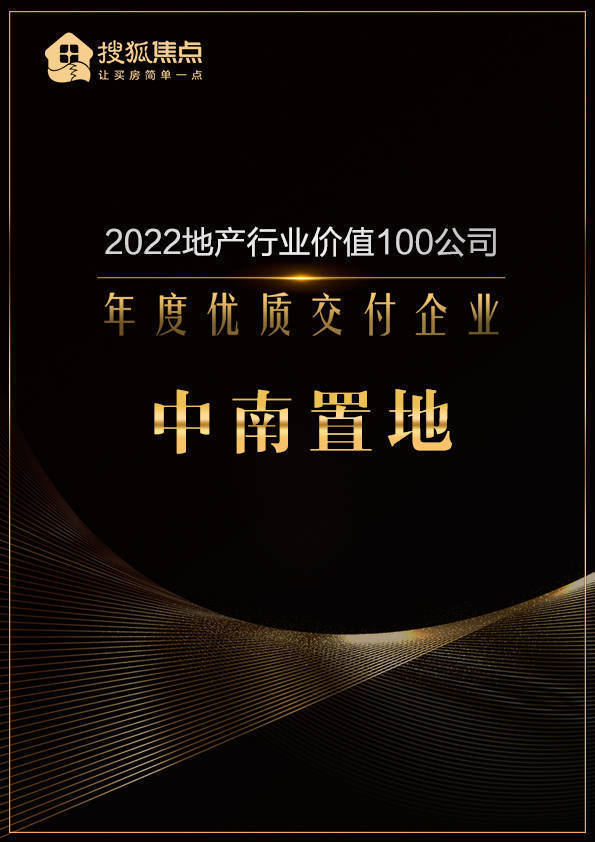 中南置地获颁2022地产价值100公司“年度优质交付企业”