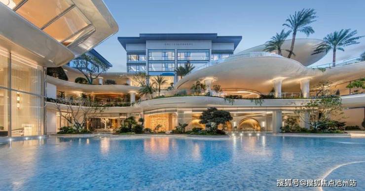 元序打造三折柔美弧线勾勒“垂直竹节”立面,兼具未来感与中式韵味。光环门廊拥有超百米宽、近11米的挑高,两侧约8米加纳利海枣与约5米塔形罗汉松,一眼望去豪奢气势。