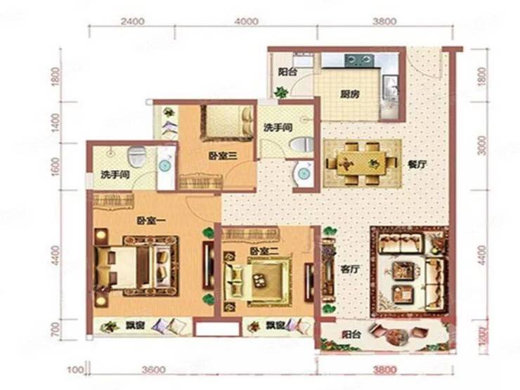 | 104㎡ 3房户型