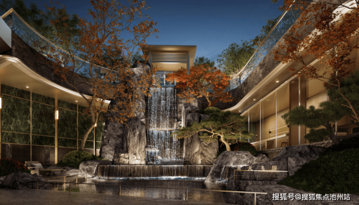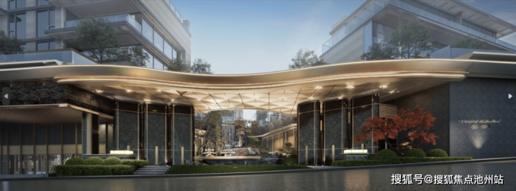 把小区大门做大、做宽,在杭州已经不算稀奇。安云玖院不止为36户业主设计了尺度阔的豪华大门,还在门内打造了一座七米高的飞瀑景观,让大门本身成为小区重要的景观节点。