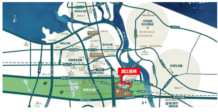 交通配套:多维交通畅达全城,从项目到达海口美兰国际机场现行交通距离约 12.2 公里,到达海口动车东站现行交通距离约 7.5 公里,到达新城吾悦广场现行交通距离约 8 公里,到达江东新区 CBD 现行交通距离 5.2 公里。小区周边约 0.5 公里有公交站,有多条公交线路经过。