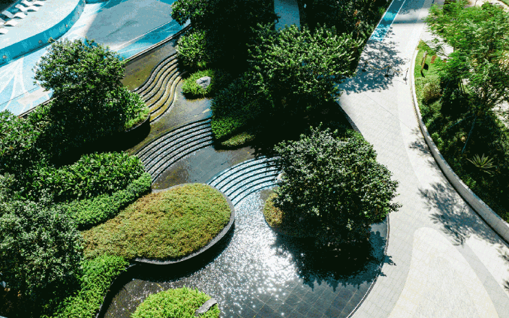 园林之中,还嵌入一系列活力场所,约1000方风情泳池划分深浅水区,有儿童戏水区、儿童游泳区和成人游泳区,并设独立更衣室,人性化功能拉满。