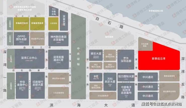 位于深超总东端,东面是华侨城蓝楹万,南面是TCL和学校用地,西面是京东深圳总部,北面是华侨城湿地公园。