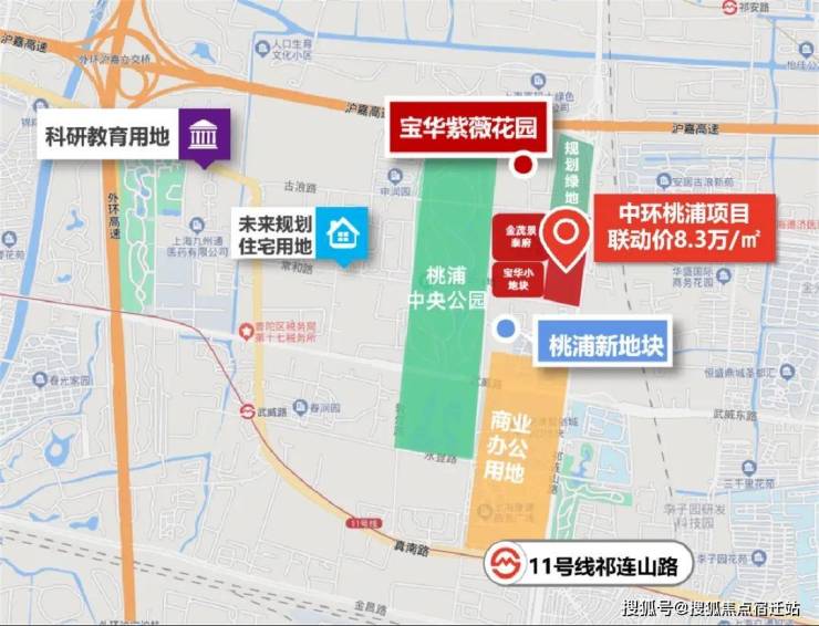 交通配套:项目地块临近沪嘉高速、外环高速,可快速直达虹桥枢纽,往南1公里为地铁11号线祁连山路站,往东1.5公里为地铁15号线古浪路站。