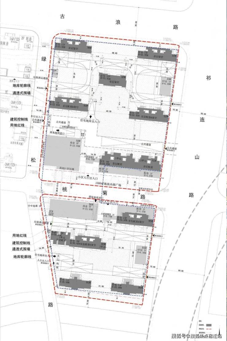 项目地块东至祁连山路,西至规划绿松路,南至常和路,北至古浪路。拟建10栋11-17层住宅,另有部分商用及配套用房。