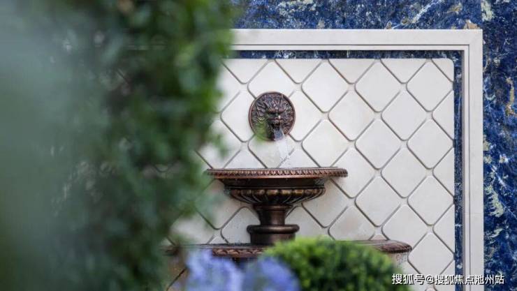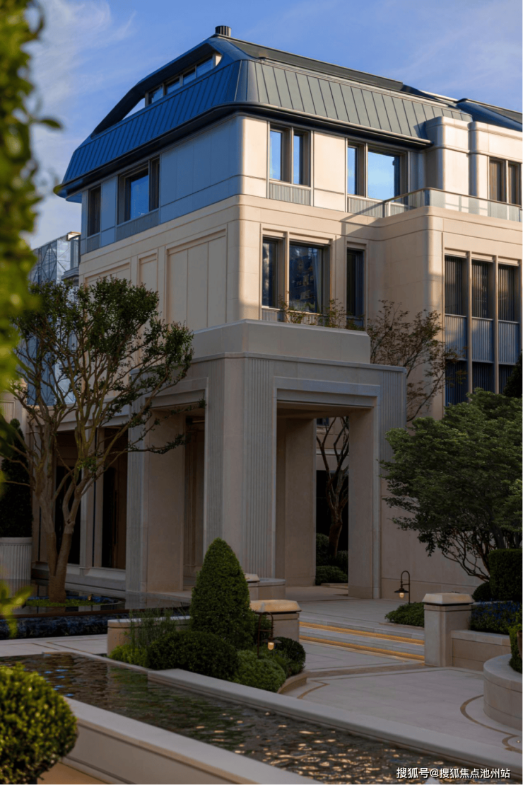 以意式美学植物与对称水景营造秩序感,丹桂树阵融汇东方写意,蓝翡翠奢石串联水系轴线。