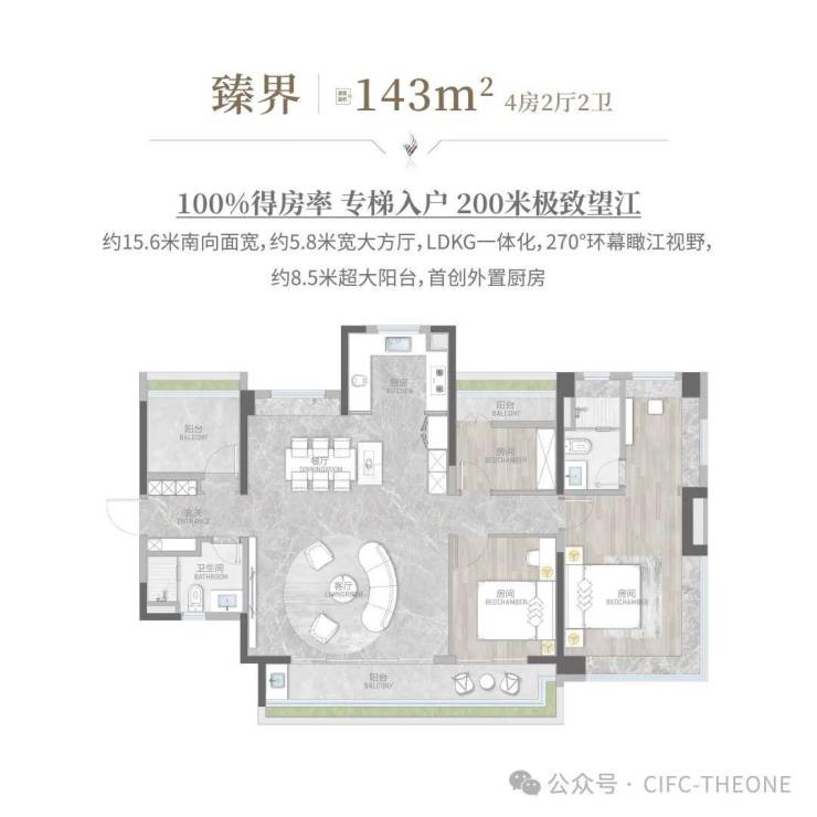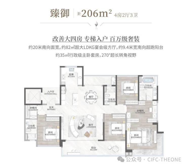 190㎡户型中,面宽约6.2米客厅、面积高达约80m²的LDKG无界方厅,一个会客厅就等于小户型的一套房,为层峯人士打造殿堂级的高端生活体验。超35㎡的星级酒店式主卧套房,全维度、大尺度打造层峯奢尚生活。
