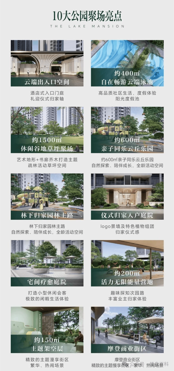 休闲——自带400㎡云端泳池、1500㎡休闲草坪、亲子乐园、能量营地、主题架空层等十大云湖聚集场,生活场域更丰盈;约200米即达3000亩白云湖,私揽白云湖为自家后花园;