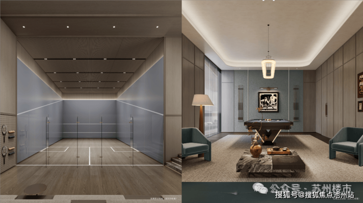以众乐会所为例,这里不仅配备了健身瑜伽室、私宴厅、吧台、影音室等日常所需的功能空间,满足运动、宴请、休闲等多样需求,更贴心增设壁球室和台球室,丰富业主的空余时间。