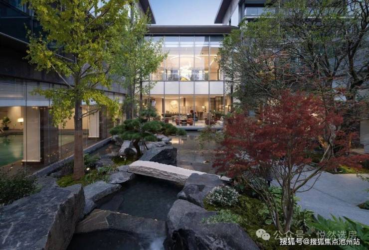 🟠[山水意境]岩涧弥香,首创立体山水庭院融汇宁波山水格局,独创绿城宁波首座立体下沉式山水庭院,金钱松、黑松、老桂花萦绕四季馥香,赏叠水瀑布、太行山石自然意趣。