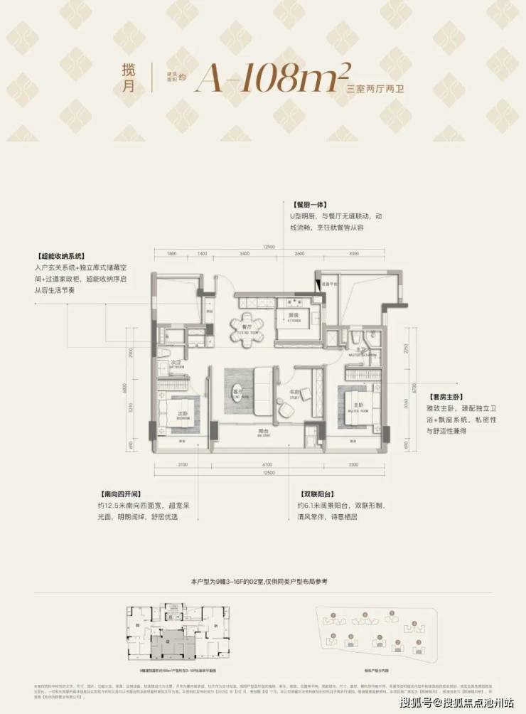 建面约108方的阔绰3房,起步单价仅约3.262万/平;