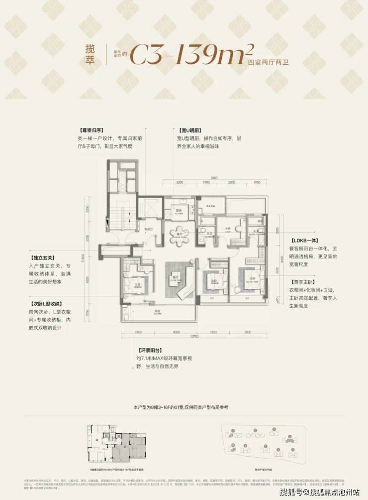 建面约139方大四房,起步单价仅约3.4695万/平;