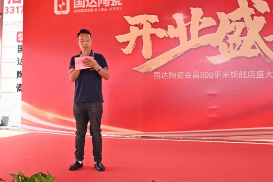 国达陶瓷会昌旗舰店总经理王合果先生作开业致辞,对总部给予的支持表示衷心的感谢,国达陶瓷会昌旗舰店将秉承“内外墙砖别墅整装”的品牌理念,为会昌消费者提供更新、更全的别墅内外墙砖产品和购物新体验。