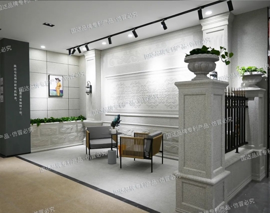 国达陶瓷会昌旗舰店历时数月精心打造,融合内外墙砖别墅整装理念,将国际范的别墅空间展示带到了会昌。国达陶瓷会昌旗舰店外立面展示了品牌较新的外墙砖产品,天下排名前列福、松鹤延年壁画、壁柱饰花等等,整体效果贵气独特,别致匠心,给用户带来恢宏大气的空间感受。