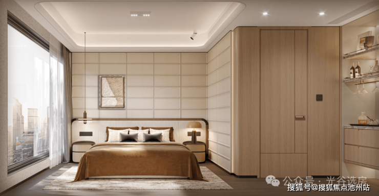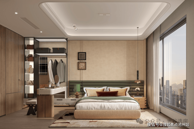 谁能想到约100 平的小户型,能做出约20平的递进式主卧套?房间-衣帽间-卫生间-淋浴间的动线设计,既保证了私密性,又充满仪式感。