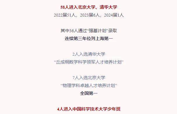 要知道,2022年华师大第二附属中学就有58人进入清北,其中36人通过“强基计划”录取,连续第三年位列上海第一。