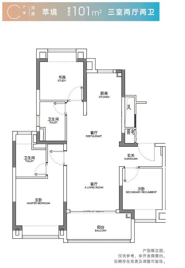 【101㎡户型】独立玄关、三开间朝南,飞机户型更高利用率