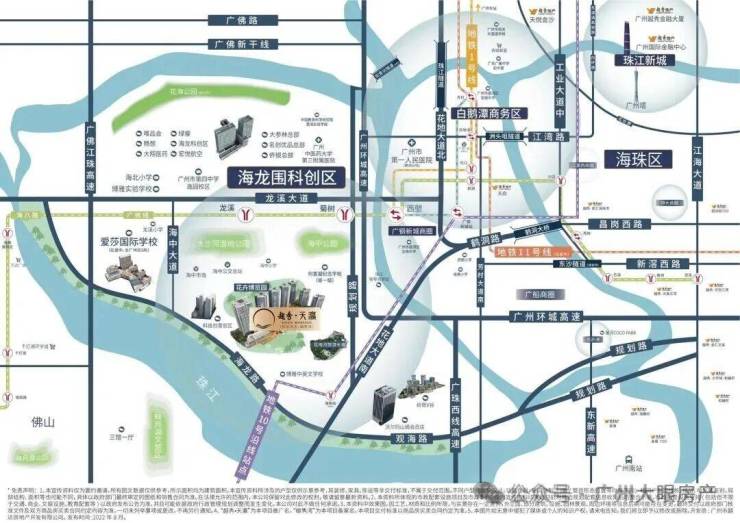 但老实说,越秀天瀛位置跟白鹅潭关系不大,距离白鹅潭核心区域将近10公里。