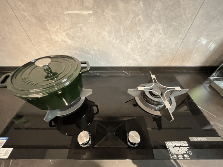 厨房 厨房灶台并不像很多项目做了“三眼灶”、“四眼灶”,其实灶眼多反而放不下中式的大炒锅;缦云上海选用的这款BOSCH博世炉灶,液晶面板可定时,这样煲汤的时候就无需盯着;钢化玻璃材质,更易清理,油渍不容易渗入。