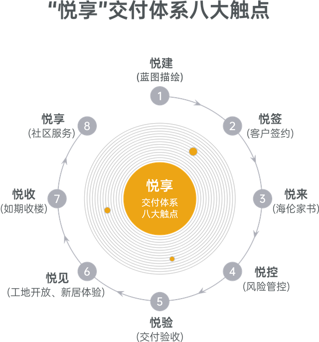 在悦享交付体系中,海伦堡设置了交付服务的八大触点:悦建(蓝图描绘)、悦签(客户签约)、悦来(海伦家书)、悦控(风险管控)、悦验(交付验收)、悦见(工地开放、新居体验)、悦收(如期收楼)、悦享(社区服务),全面保障并不断提升全生命周期的高品质交付水平,为品质交付打下坚实基础及实现服务闭环。