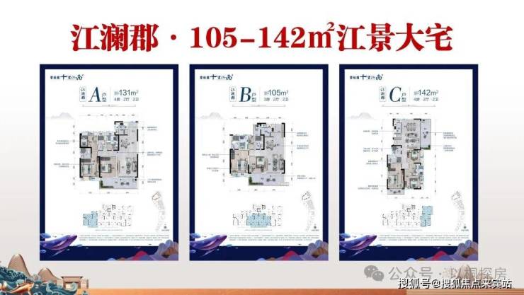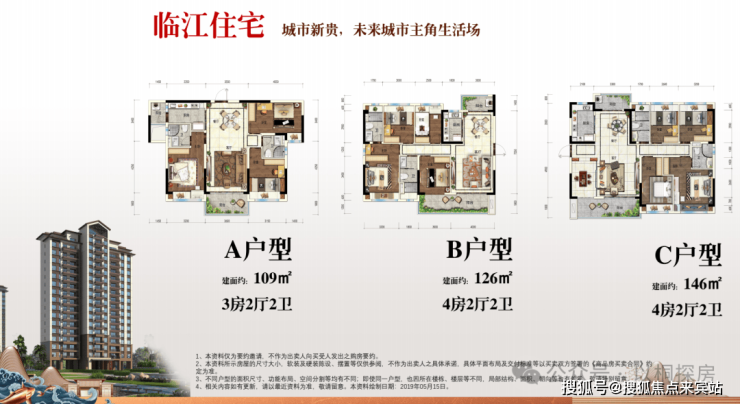 ①精装洋房:约109-146㎡三至四房,两梯三户,户户南北通透,享受一线江景,城市菁英生活场。