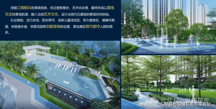 ①小区配套:游泳池、阳光草坪、儿童游乐园、热力健身区、健身跑道等。