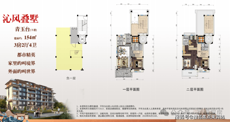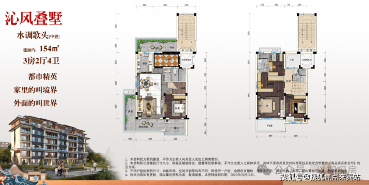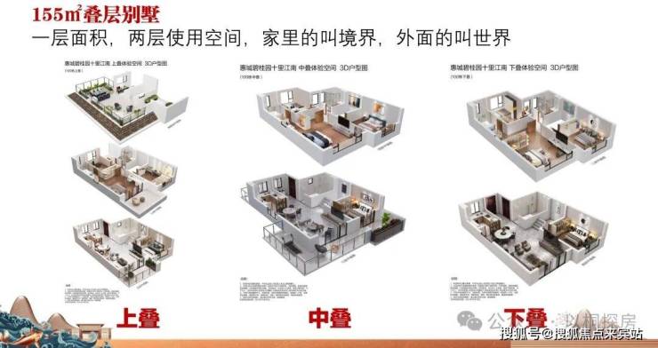 ②叠墅:约155㎡ 叠层别墅,一层面积,三层使用空间,家里的叫境界,外面的叫世界。