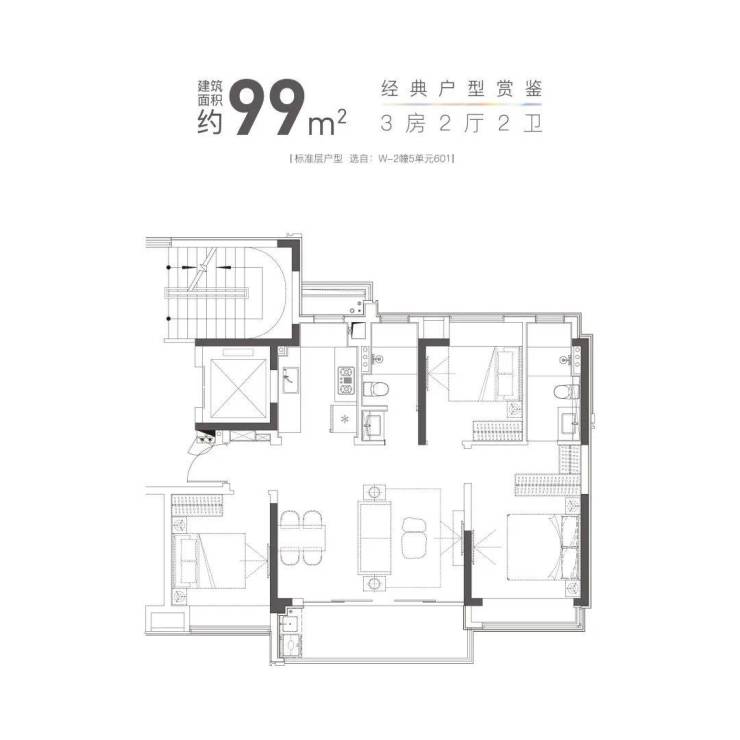 不同于市面上千篇一律的三房户型,项目建面约99㎡做了大横厅设计。三开间朝南+南北通透,采光面和通风条件非常棒!客餐厅LDKG一体化设计,拉伸空间尺度感,提升家庭成员之间的互动感。