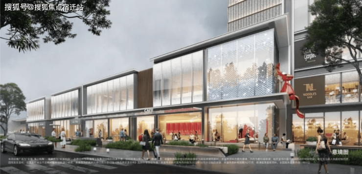 外立面材质在真石漆基础上点缀了铝板线条、LOW-E 玻璃,建筑线条上勾勒了类似 “双眼皮”的双重线条作为细部装饰,顶部架构结合塔冠,打造建筑的“第五立面”