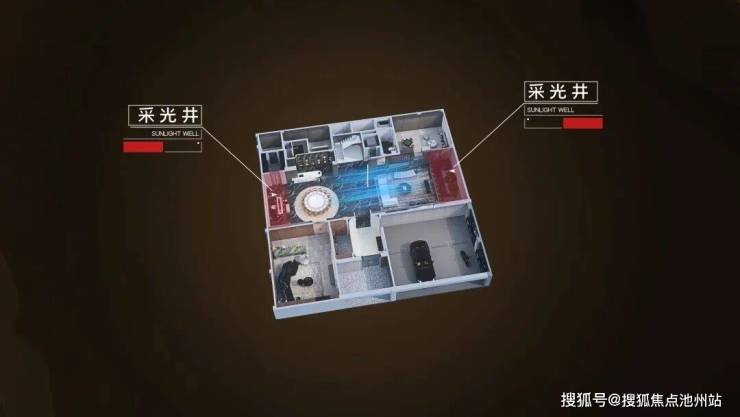 你看玉瓯源建面约900多方户型的地下空间,挑高足足有约6.5米,东西两侧有下沉花园和采光井,充足的采光条件和良好的空气对流条件,把地下室做出地上空间的感受。