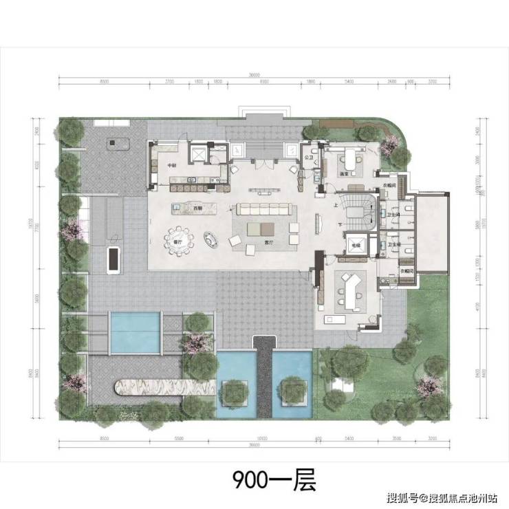 当这些腾挪出来的土地,都变成花园绿地的时候,又会给玉瓯源带来怎样的震撼效果呢?让我们看一下这套建面约900多方的首层总平图就知道了: