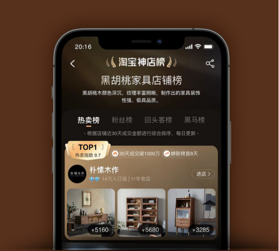 5年笃定原创之路,自有工厂严格把控家具成品的质量,让朴愫木作在淘宝赢得了14万+粉丝关注。在2021年双11期间,朴愫木作斩获淘宝神店榜黑胡桃家具热销店铺排行榜TOP1,品牌同比去年销量增长91%,客户认同的背后是对于品质把控的长久蕴藉。