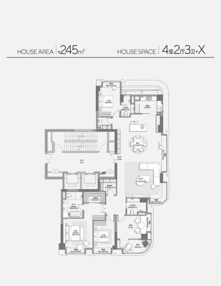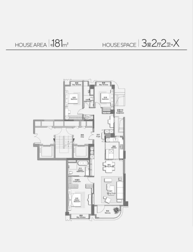 户型图&室内效果图:▼建面约181㎡3房2厅2卫