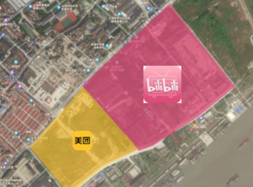 巧的是,2个月前美团斥资65亿元,拿下了一宗楼面价22350.36元/㎡的地块,就在B站地块旁。