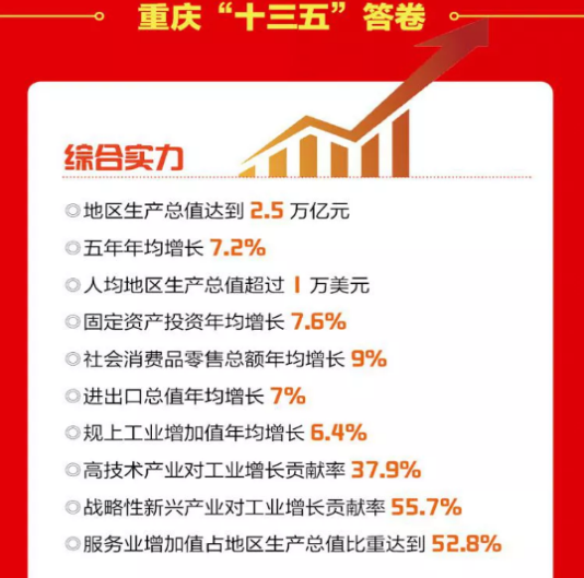 经过十三五期间的调整转型,重庆的高技术制造业和战略性新兴产业,在去年都取得了两位数的增长。