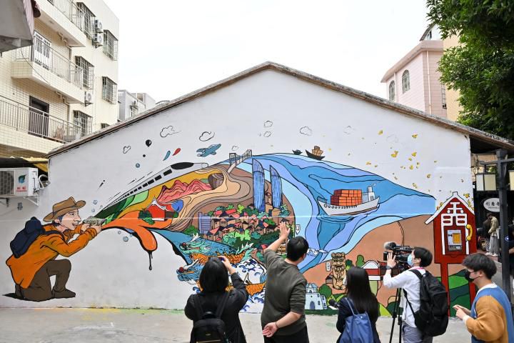 正在此间举行的第十三届海峡论坛期间,这幅作品获得第三届创意涂鸦大奖赛优秀设计奖。“它的‘彩蛋’在于两岸联动:在金门,有一幅一模一样的涂鸦。”创作者之一、福建青年徐晨晖说,希望这两幅遥相呼应的涂鸦能够成为厦金的新景点。