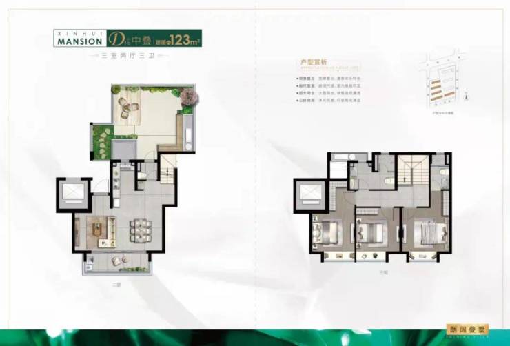 2复3的131㎡中叠户型,三房两厅三卫