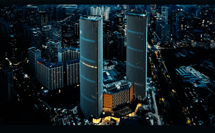是杭州之门后,奥体落成的海拔第二高双塔(约250米),外号“小杭州之门”。瑰郦中心L-VILLA位于T2塔楼,12层的裙楼就是托尼洛·兰博基尼酒店。