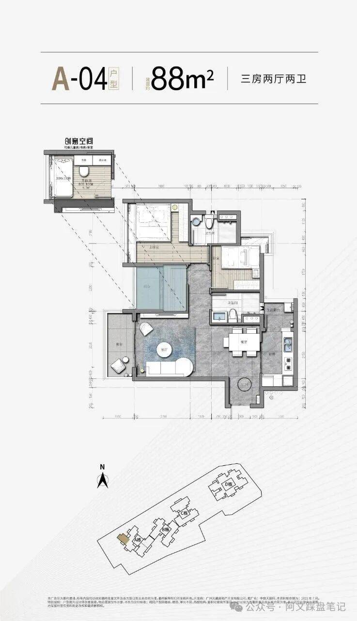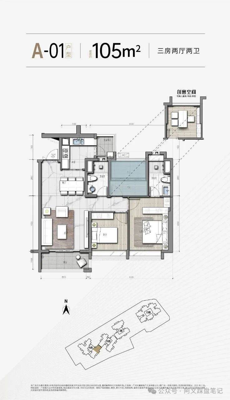 【新品户型】D栋产品87、90、104、144方三至四房